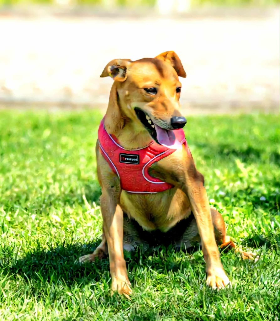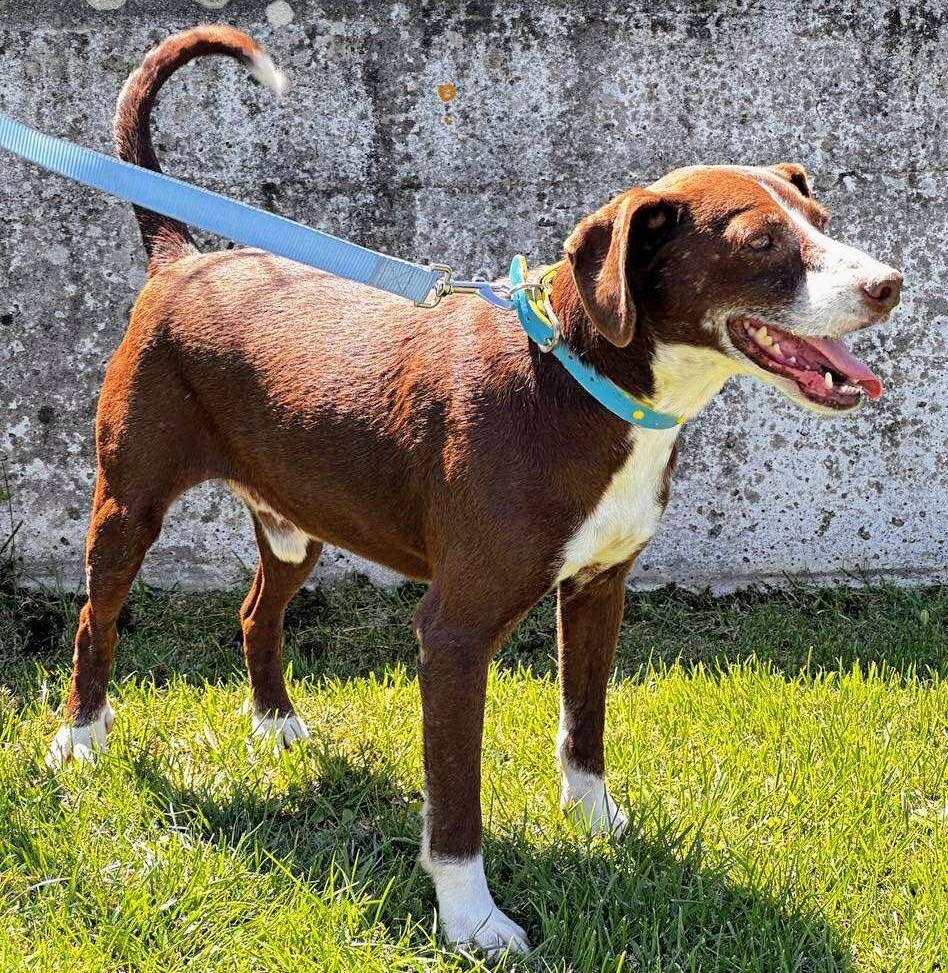 Tejo has grown up into an absolute gentleman. He’s friendly but never overwhelming, he has a permanently sunny nature despite what life has thrown at him, and he’s a delight to walk with. He has a placid temperament with a hint of playfulness, and he’s attentive and affectionate. Tejo loves his walks but never pulls. He is not bothered by traffic, cats or other dogs.